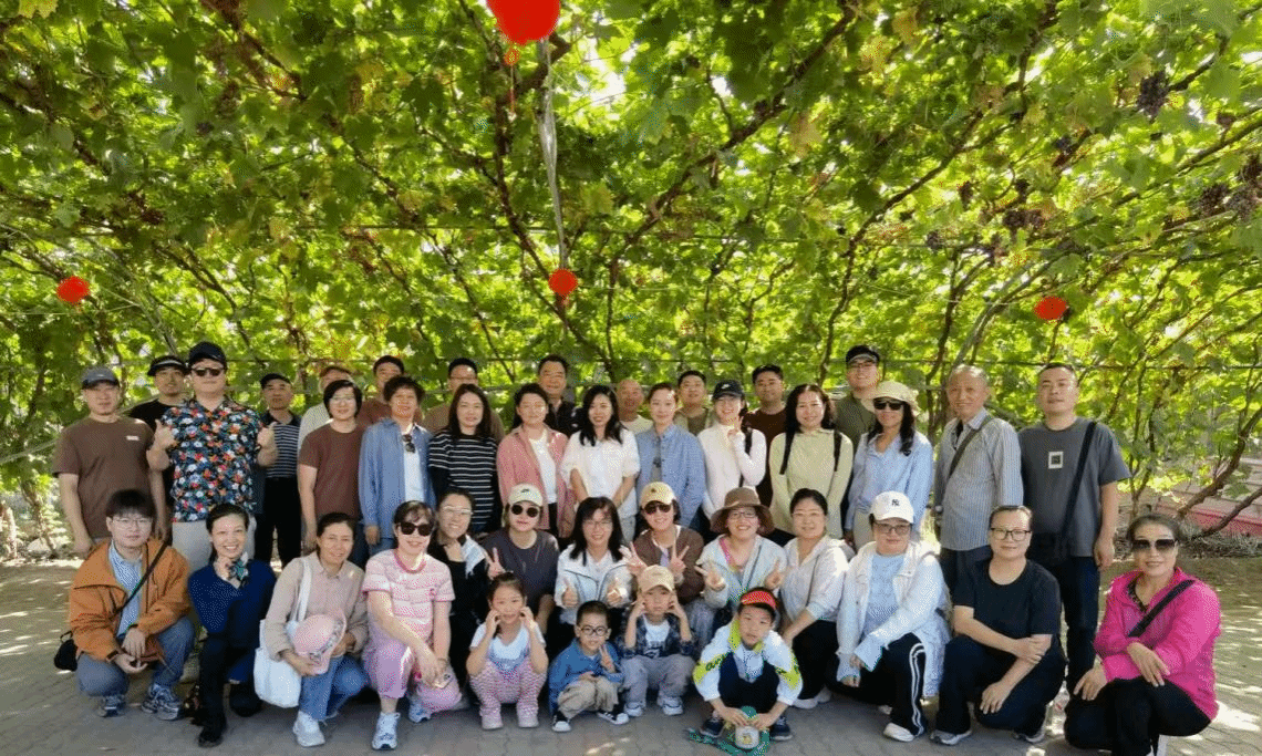 和煦的暖阳中,一行人开启了前往葡萄沟的秋日之旅。大家沿着藤蔓交织的小径漫步,个个兴致盎然,神采奕奕,沉浸在这片专属秋日的浪漫景致里。葡萄沟以其独特的田园风光深深吸引着每一位老师——累累果实垂挂藤架,斑斓的藤叶与静谧的乡间景致相映成趣,共同勾勒出一幅醉人的秋日油画。教职工们或结伴漫步,或驻足拍照,欢声笑语萦绕在葡萄架下;大家品尝着当地特色美食,亲手体验葡萄采摘的乐趣,共享丰收的喜悦,感受浓郁的田园风情。