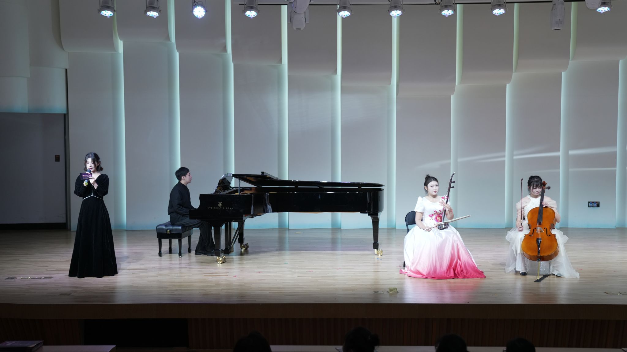三重奏《北风吹》以河北民歌《小白菜》为基础改编而成。同学们默契配合塑造了喜儿天真活泼、淳朴善良的形象,用悠扬曲调唤醒听众的时代记忆。