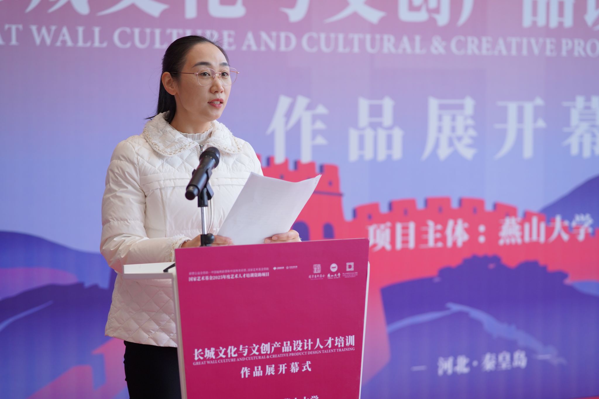 2025年11月7日10:00,国家艺术基金2025年度艺术人才培训资助项目《长城文化与文创产品设计人才培训》作品展开幕式在山海关中国长城博物馆举行。