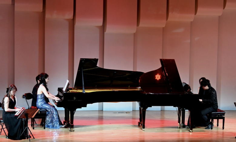 音乐会在激昂澎湃的双钢琴合奏《自由探戈》中震撼开场。通过两架钢琴与打击乐的默契配合,将古典与现代探戈音乐融合,独特的节奏充满艺术张力,展现灵动的音乐魅力。