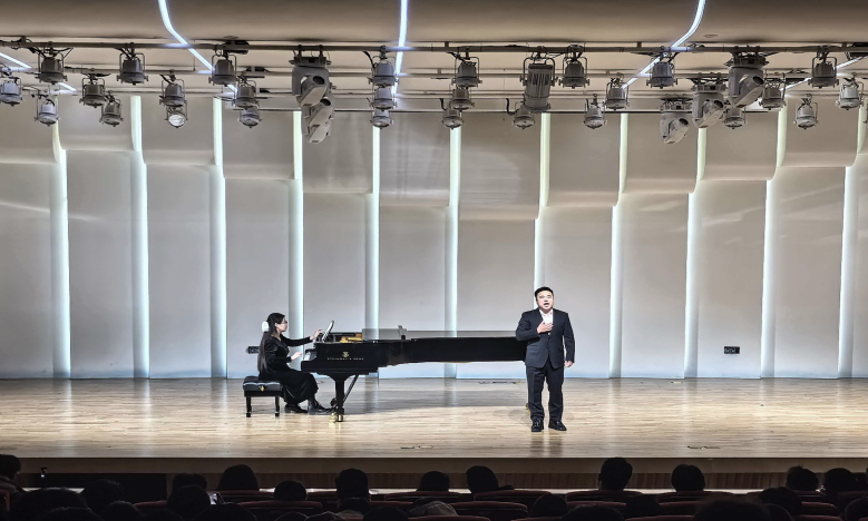 男声独唱《白云故乡》,以“白云” 为核心意象,将漂泊游子对故乡的眷恋、对家国的牵挂融入每一句唱词中,既勾勒出游子遥望故乡的孤独身影,也藏着对故土山河的深切依恋;《来不及》以直白又戳心的口吻,道尽了角色因时机错位而错失挚爱、辜负诺言的锥心遗憾,将音乐的戏剧性展现的淋漓尽致。