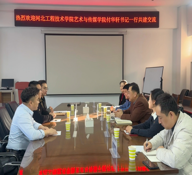 的发展历程,系统介绍了学院党委近年来在强化党建引领、夯实组织基础、推动党建与业务深度融合等方面取得的显著成效。他表示,此次支部共建是贯彻落实新时代党的建设总要求的具体举措,也是推动高校基层党组织高质量发展的重要路径,希望以此次共建为契机,进一步加强两校在党建、教学、科研、育人等方面的深度合作。随后,河北工程技术学院艺术与传媒学院党总支书记付华轩介绍了本院教工党支部的基本情况,并就当前在师资队伍建设、基层党建创新等方面面临的现实问题与挑战进行了坦诚交流。他表示,成人短视频