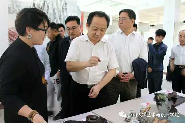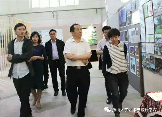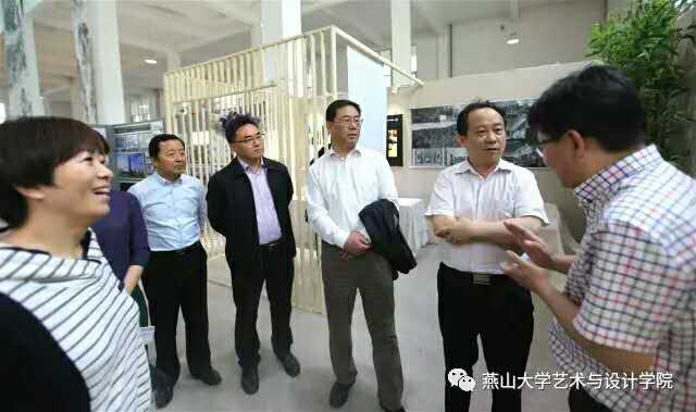 陈国强院长、王继东书记、赵琳副院长,以及各专业讲解团教师热情接待了来宾。刘宏民校长向来宾介绍了学校的发展状况、专业特色,陈国强院长介绍了2017届本科生毕业作品展的筹备、主题、作品等情况。