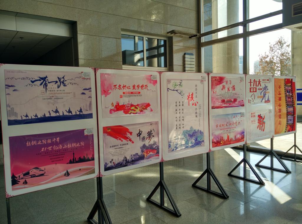 “走进新时代 开启新征程——学习宣传党的十九大精神”学生文艺作品征集活动。学生们踊跃参加,提交的作品形式多样,包括画作、书法、剪纸、海报等,以实际行动为党的十九大献礼。活动共收到90个作品。其中设计作品33副,书法作品4副,国画作品3副,手抄报18副,手绘作品2副,漫画1副,剪纸作品4副,歌曲2首,话剧19部,征文1篇,手翻画1本,诗歌2首。活动旨在引导广大青年学生学习并宣传党的十九大精神,用作品检验学习成果。
