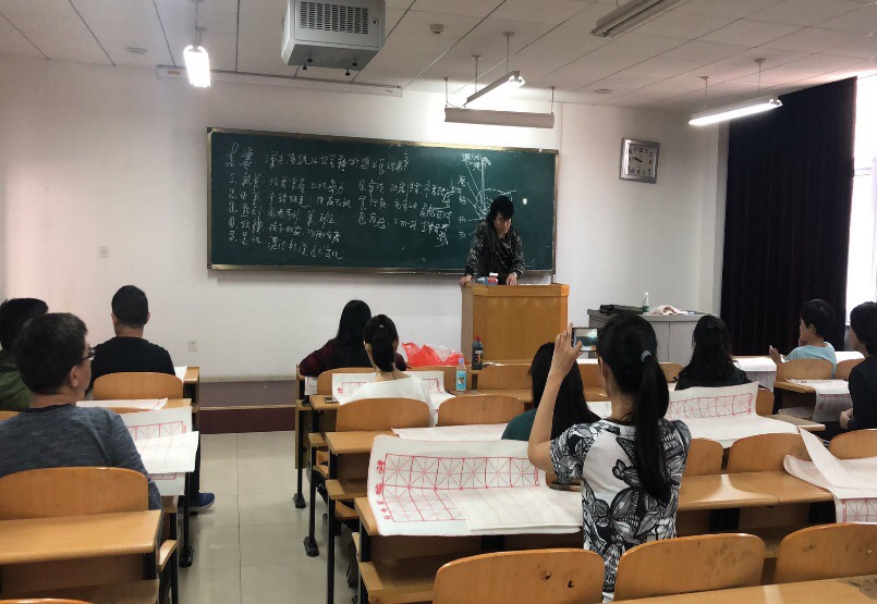 为丰富教职工业余生活,让老师们在繁忙的工作之余能借书香翰墨怡情养性,同时也为爱好书法的教职工提供一个交流沟通的平台,艺术学院工会于5月16日下午两点半在美术馆A203组织开设书法课,特邀视觉传达系谷庆巍老师到现场指导教学。谷庆巍老师精于书法创作、理论研究,一直坚持进行书法教学,书法水平非同一般。