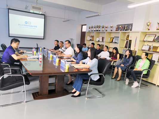 随后,王德松、袁旭梅一行与学院领导、系部负责人在美术馆C305会议室进行了座谈交流。孙利院长介绍了学院的发展定位、近年来取得的科研成果、存在的不足以及下一步科研工作的重点。学院其他领导和系部的负责人就学科建设、科研团队建设、科研实践基地建设、人才引进与培养等方面与王德松一行进行了深入的探讨和交流。