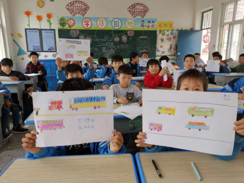 孩子们积极地向志愿者老师展示自己的作品
