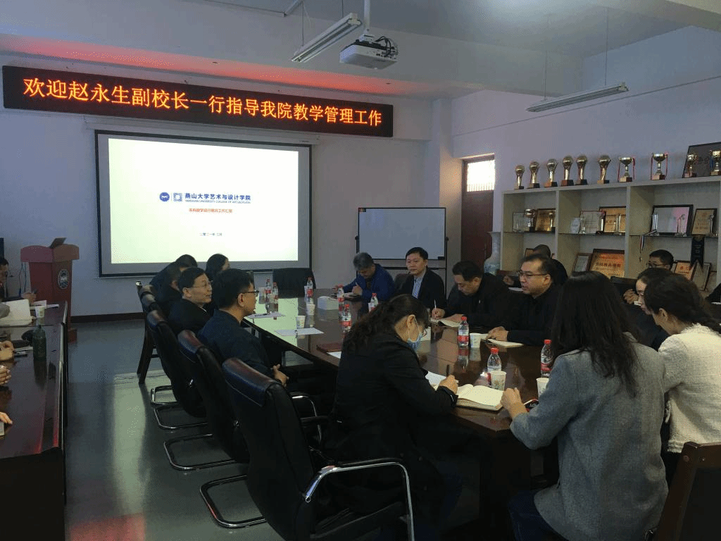 党委书记张文超、院长孙利,副院长赵琳,副院长张竹岩,副书记宁岩鹏,各系部中心主任、副主任、教学秘书等在美术馆C305会议室接待了调研组一行。