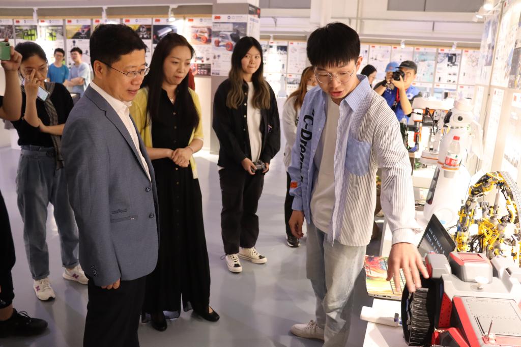 我院各系师生向领导和嘉宾讲解设计作品内容