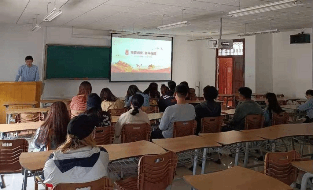 党日活动中,本科生第三党支部的周洋、王振洋同志带领同学们认真学习了长征精神、五四精神、红船精神;鉴赏了油画作品《启航》、音乐作品《江姐》,观看了爱国主义影视作品《觉醒时代》片段;本科生第二党支部牛锃钰同志带领大家赏析红歌《东方红》,学习毛泽东同志威武雄壮、气势磅礴的革命史诗《七律·长征》,观影《理想照耀中国》片段,以人带史,再现共产党人敢想敢为的担当精神;本科生第四党支部书记盖鸿章为同学们讲述历史人物林伯渠、方志敏的革命事迹,赏析美术作品《毛主席在文家市》,引导同学们追寻红色历史,传承红色基因。