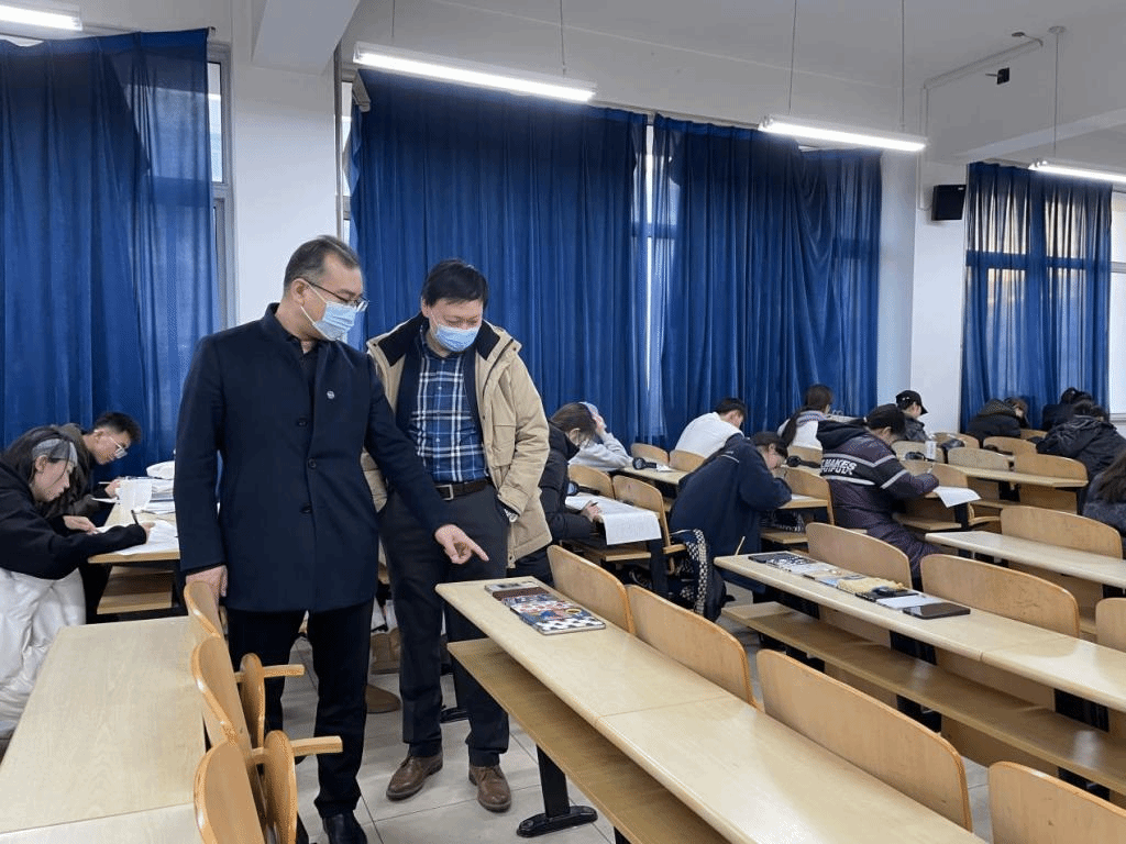 院长孙利、党委书记张文超、教学副院长赵琳、副书记宁岩鹏分别深入学院学生所属考场,现场督查监考老师到岗情况、学生考场纪律。