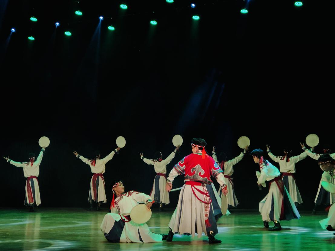 在备赛过程中,同学们勤学苦练、团结奋进,将“奋斗基因、工匠精神、卓越品质、家国情怀”的燕大精神熔铸于作品的创作、表演中,以展现燕大学子的青春风采和精神风貌。原创作品《花腰情》结合彝族传统文化和习俗,以“花腰带”为核心,通过“花腰带”的甩摆飞舞、迎风飞旋,深切的表达了彝族少女对心上人的悠悠情思,以及对美好生活的无限向往,作品弘扬了彝族的民间文化,是对民族传统的优良继承和开拓创新。舞蹈作品《赞歌》运用传统蒙古族舞蹈语汇描摹出一群英勇的草原汉子,他们击打着手中的战鼓发出阵阵激昂的声响,将草原汉子们内心激昂壮阔的心境呈现于舞台之上,表达了草原儿女对党的无限热爱和对祖国富强兴旺的美好愿望。