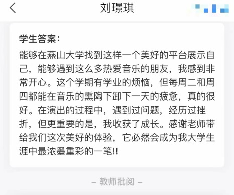 通过本门课程的学习,同学们感受到了音乐的美好,提升了艺术素养,实现了学习钢琴的梦想,体验了舞台的魅力,收获了珍贵的友谊,也展现了大学生的青春与才华。