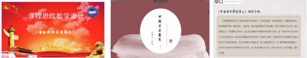 艺术基础教研部杜小婉老师汇报《音乐初探与实践》课程思政教学案例,石莹老师汇报《中国音乐鉴赏》课程思政教学案例,袁帅老师汇报《中国歌剧那些事儿》课程思政教学案例。