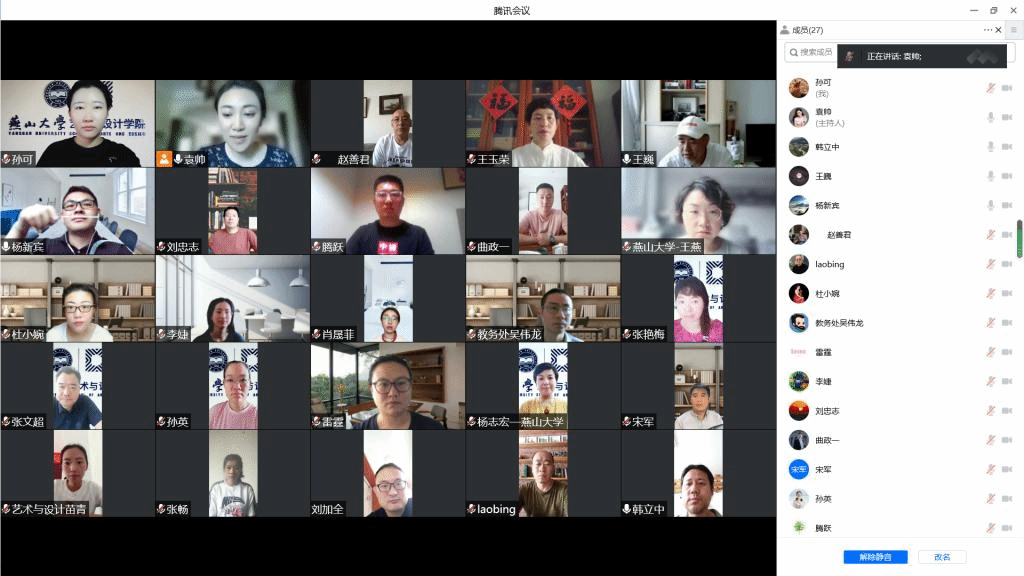艺术基础教研部、公共艺术系与马克思主义学院思想道德修养与法律基础教研部线上合影