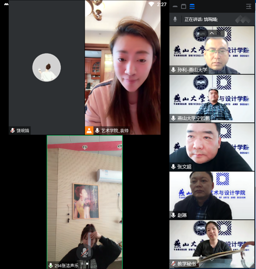 开展本学期第五次集中线上教学专项检查。院长孙利、党委书记张文超、副院长赵琳、副院长刘维尚、党委副书记宁岩鹏等学院领导班子成员,开展线上听课督导活动,本次听课覆盖了音乐表演、舞蹈表演、环境设计、工业设计和视觉传达5个专业,10门专业课程。