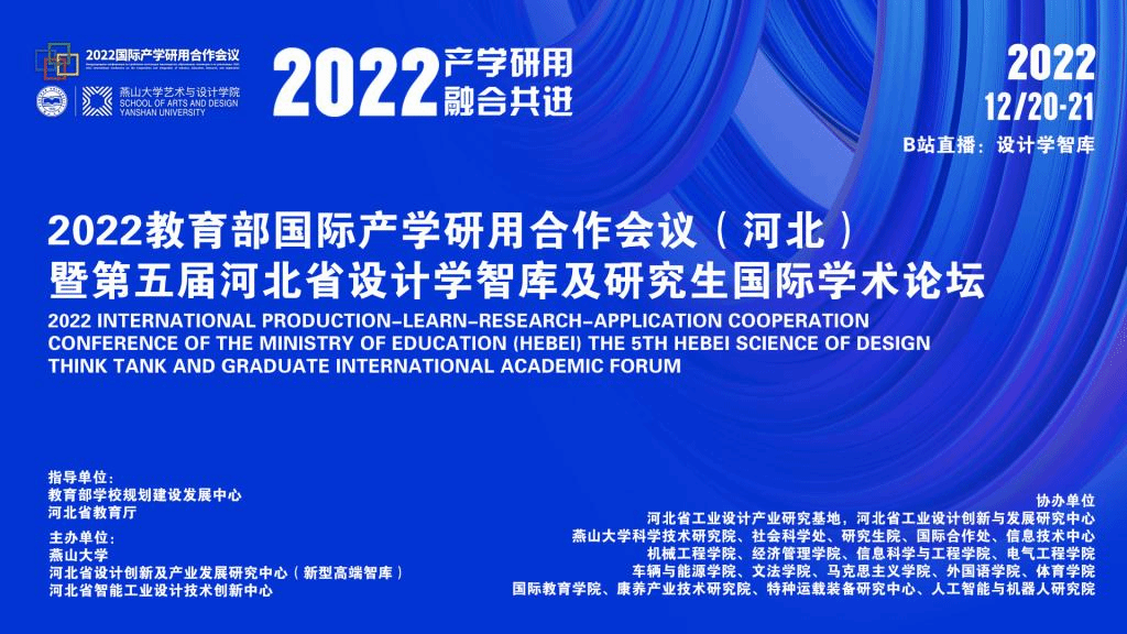 、河北省设计创新及产业发展研究中心共同承办的2022年国际产学研用合作会议(河北)暨第五届河北省设计学智库及研究生国际学术论坛在线上隆重召开。