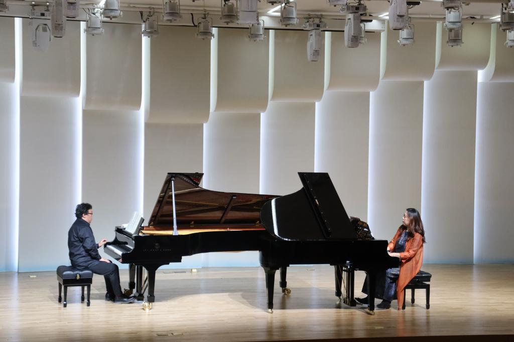 崔鸿根与夫人严霁敏表演双钢琴演奏