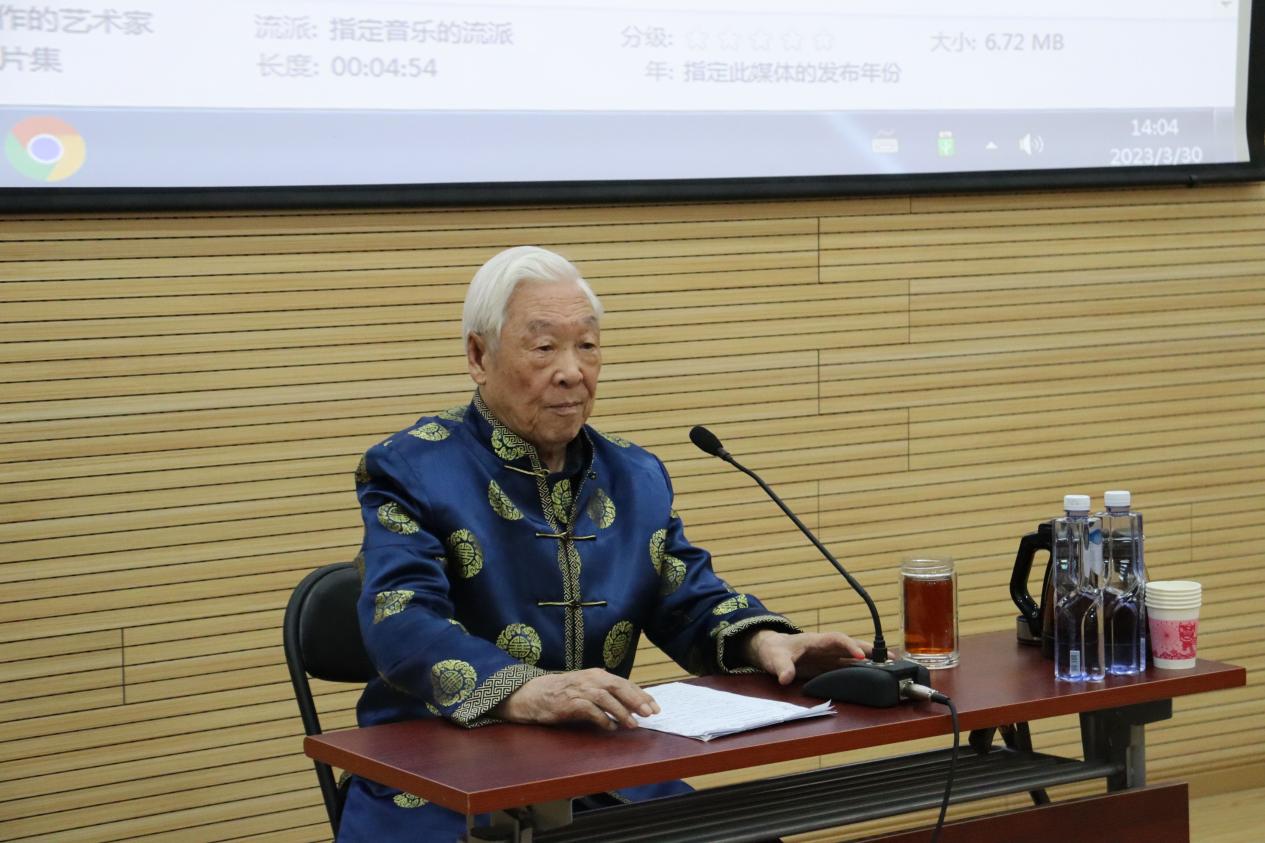 刘荣德先生首先介绍了冀东民歌在全国民歌中的影响及地位,并对冀东民歌的产生因素、艺术价值、传承意义、体裁题材及调式曲式特点等方面进行了深入浅出的分析讲解。刘先生虽然已是88岁高龄,但依旧精神矍铄,讲到动情之时亲自演唱示范,更直观的展现了冀东民歌的演唱技巧、音乐风格和艺术特征,在场观众无不被刘荣德先生的学术水平、精神境界和艺术追求所感动。
