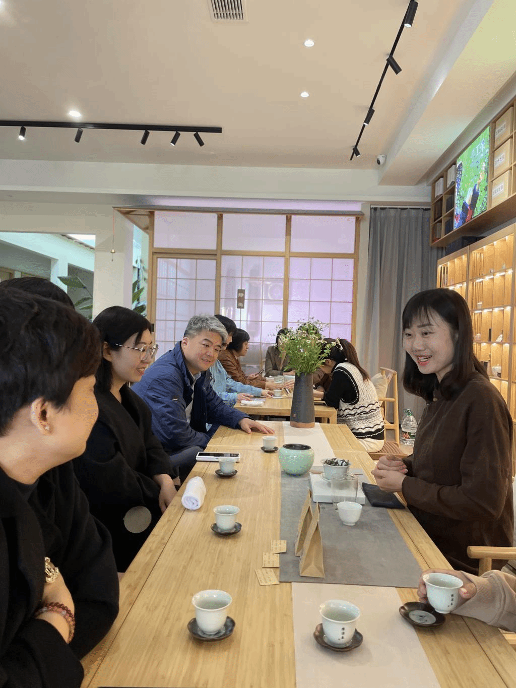 伴着悠扬的古琴,老师们凝神静气,茶艺师从中国茶的历史谈起,讲解了茶叶的基本知识和科学饮茶的要求,详细介绍了玻璃杯、盖碗的使用方法,与老师们分享了生活中常用的盖碗泡茶技艺,让老师们受益匪浅。老师们品尝了2017年寿眉、2019年白牡丹、2022年白牡丹三种白茶,味道清甜,鲜爽。茶艺老师们举手投足间,尽显中国古典美,诠释了茶文化的意蕴。