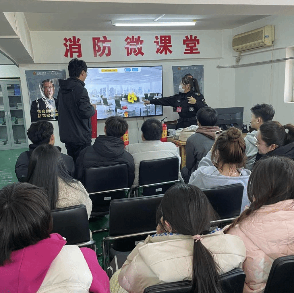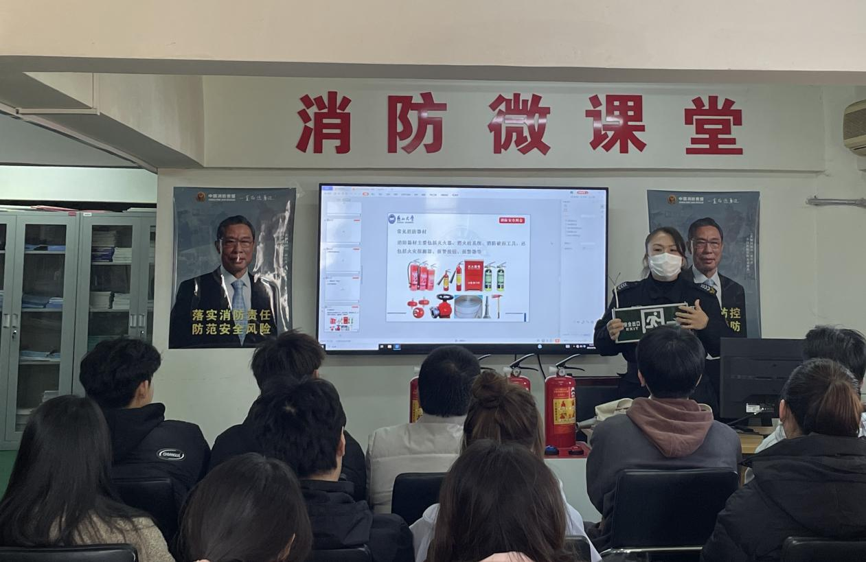 西校区微型消防站进行消防安全知识培训。此次培训由消防员张娜主讲,学院辅导员陆颖、2022级全体宿舍长参加培训。