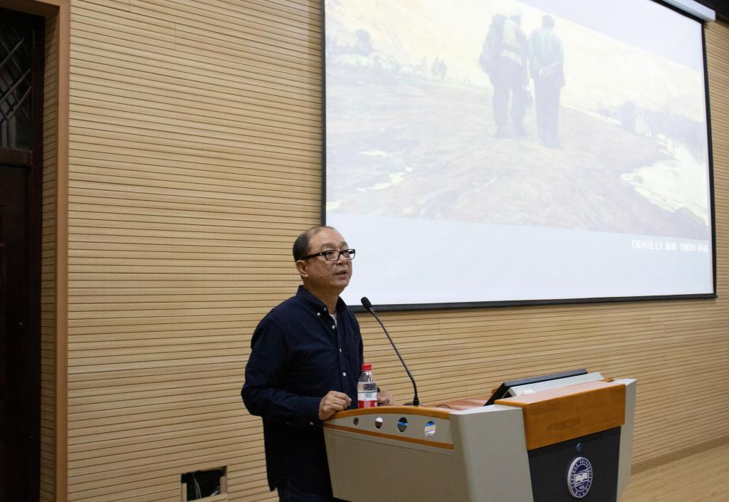 本次讲座以绘画创作的“回归本体”为主题,蒋世国教授结合自己多年的实践经验,分享了他对于艺术创作本质的深刻思考和独特见解,通过古今中外不同类别与形态的经典绘画作品的总结,对绘画的功能、意义及创作原理进行深入分析与阐述。此外,蒋世国教授对中国红色经典绘画的研究颇具心得,讲座过程中他紧紧围绕专业思政进行讲解,使得这次学术报告更具有现实意义与价值。