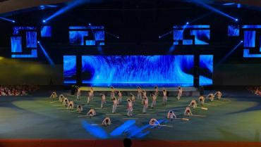 民运会开幕式文艺演出分为《千古燕赵》《盛世华章》《同心筑梦》三个篇章。每个篇章均由我校成人短视频
