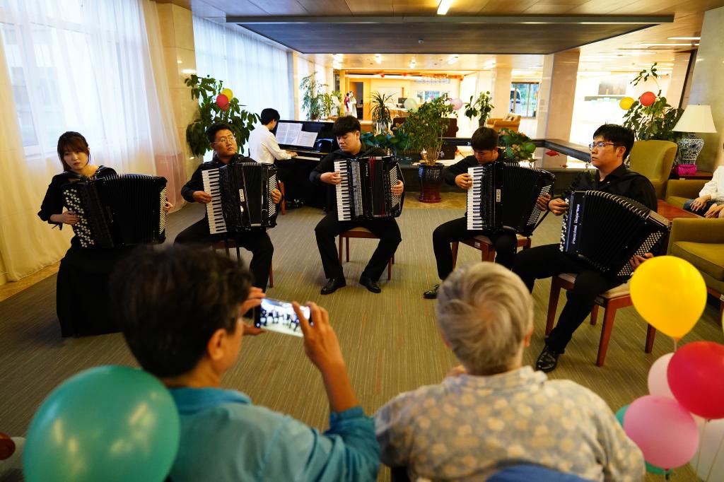 音乐系金红莲、丛玉婷、孙英、赵悦等老师共同策划并带领同学们在秦皇岛泰盛健瑞仕国际康复中心举办了一场别开生面的音乐沙龙,他们用中国音乐作品讲述了一个个动人的故事,通过音乐向康复中心的病患们传递温暖的问候。