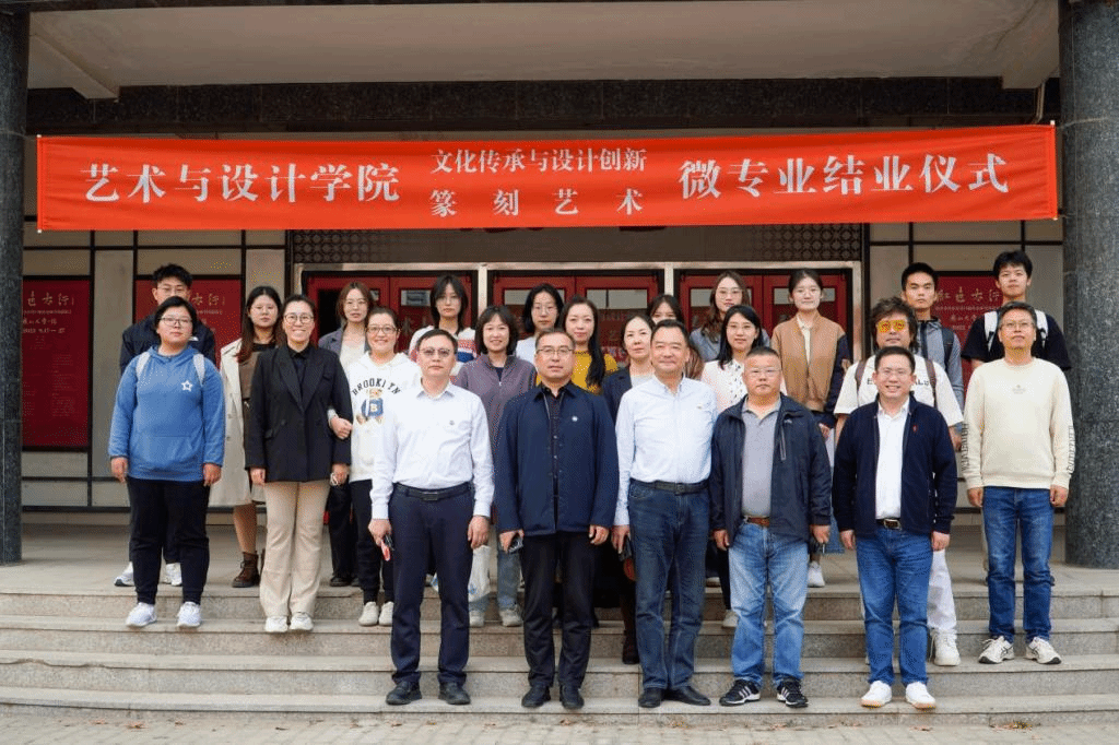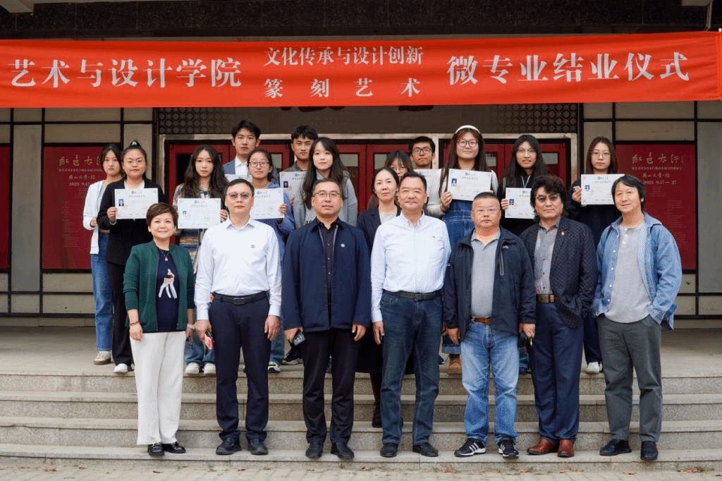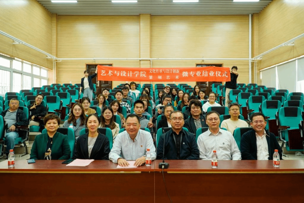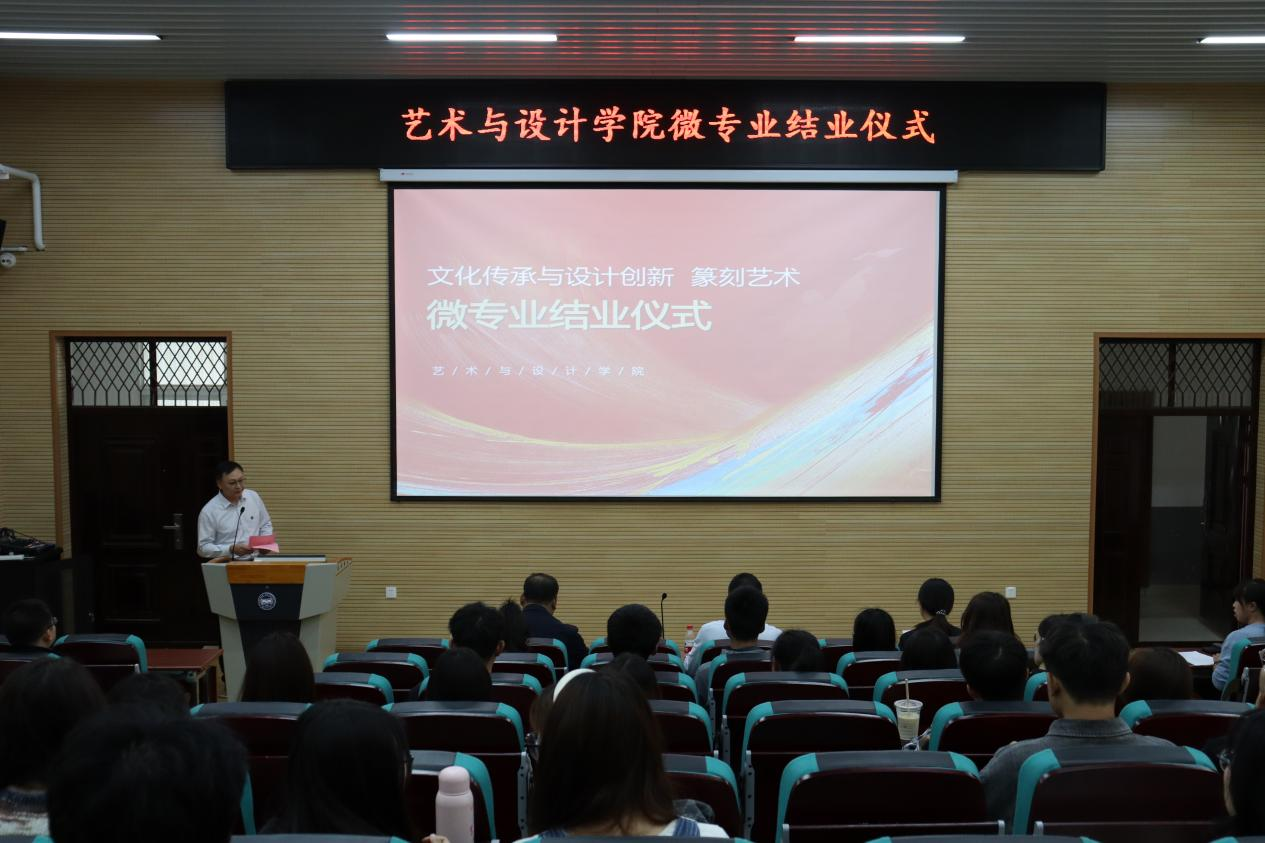 院长孙利、党委书记张文超和“文化传承与设计”、“篆刻艺术”两个微专业教师代表以及26名微专业学生参加了结业仪式,仪式由成人短视频