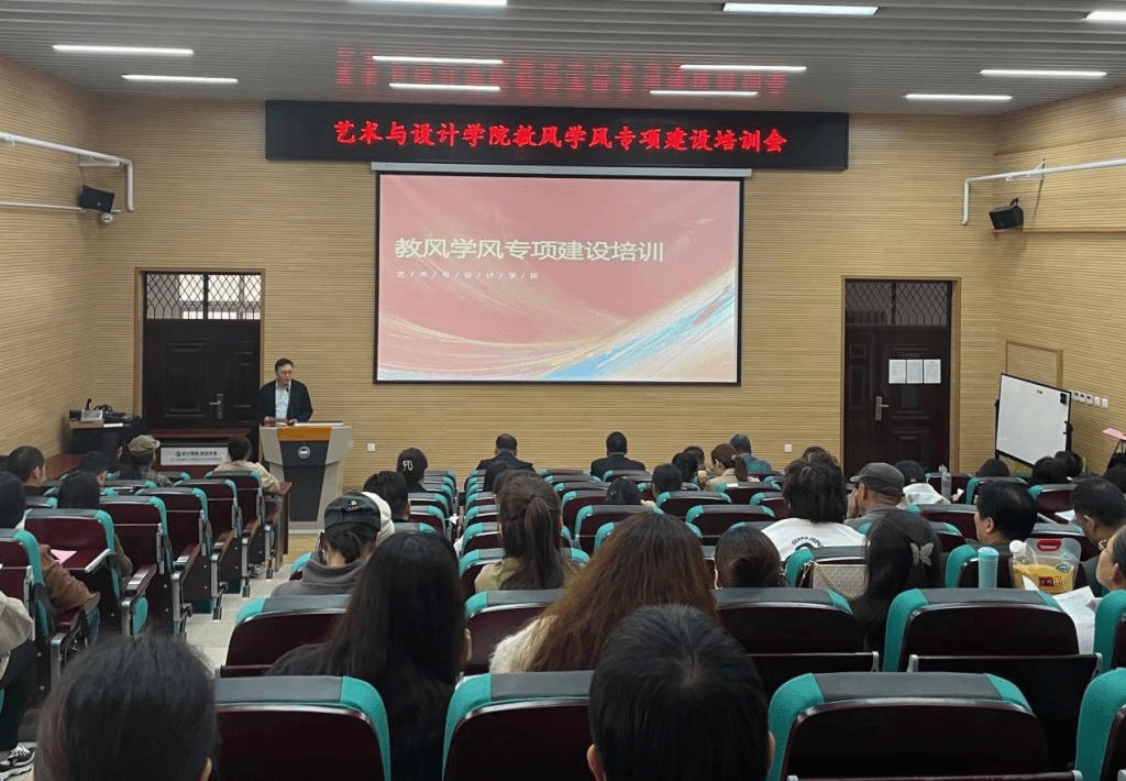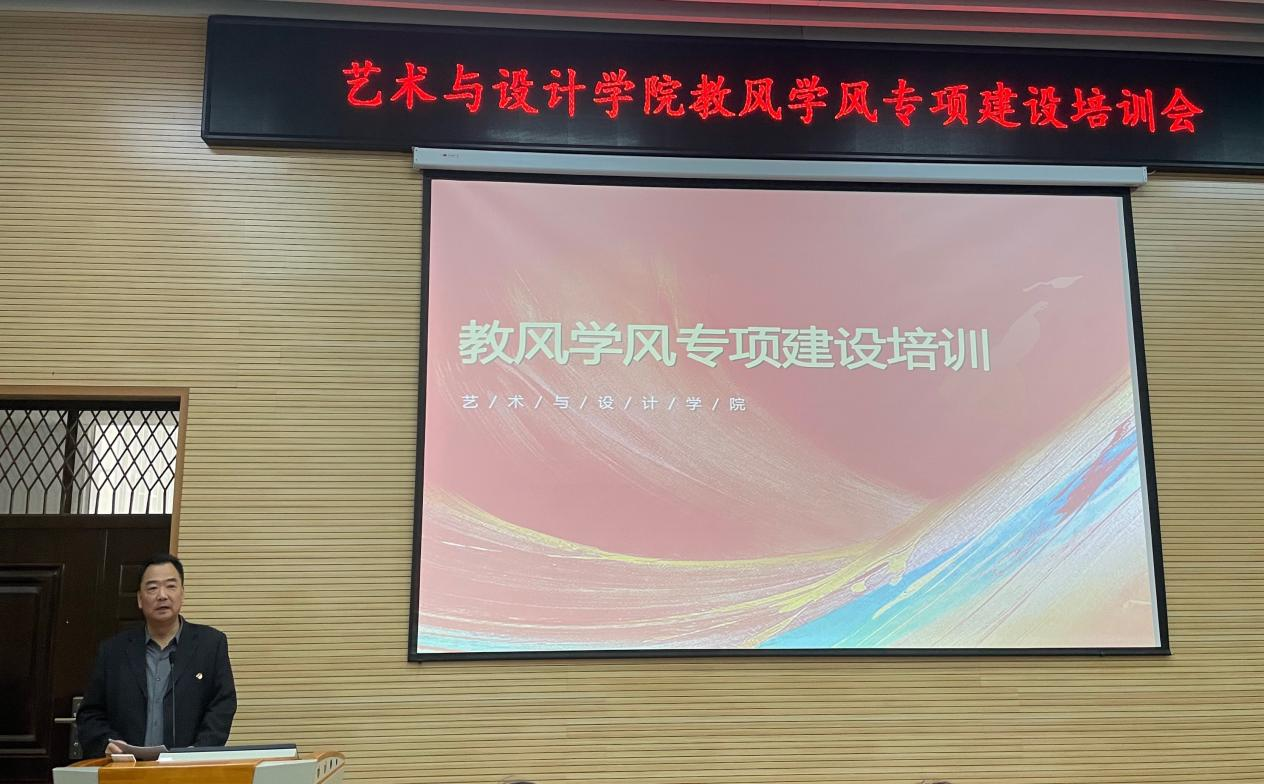 在音乐馆B105会议室召开教风学风师德师风建设教育培训大会,学院领导班子全体成员及全体教职工参加会议,副院长赵琳主持会议。