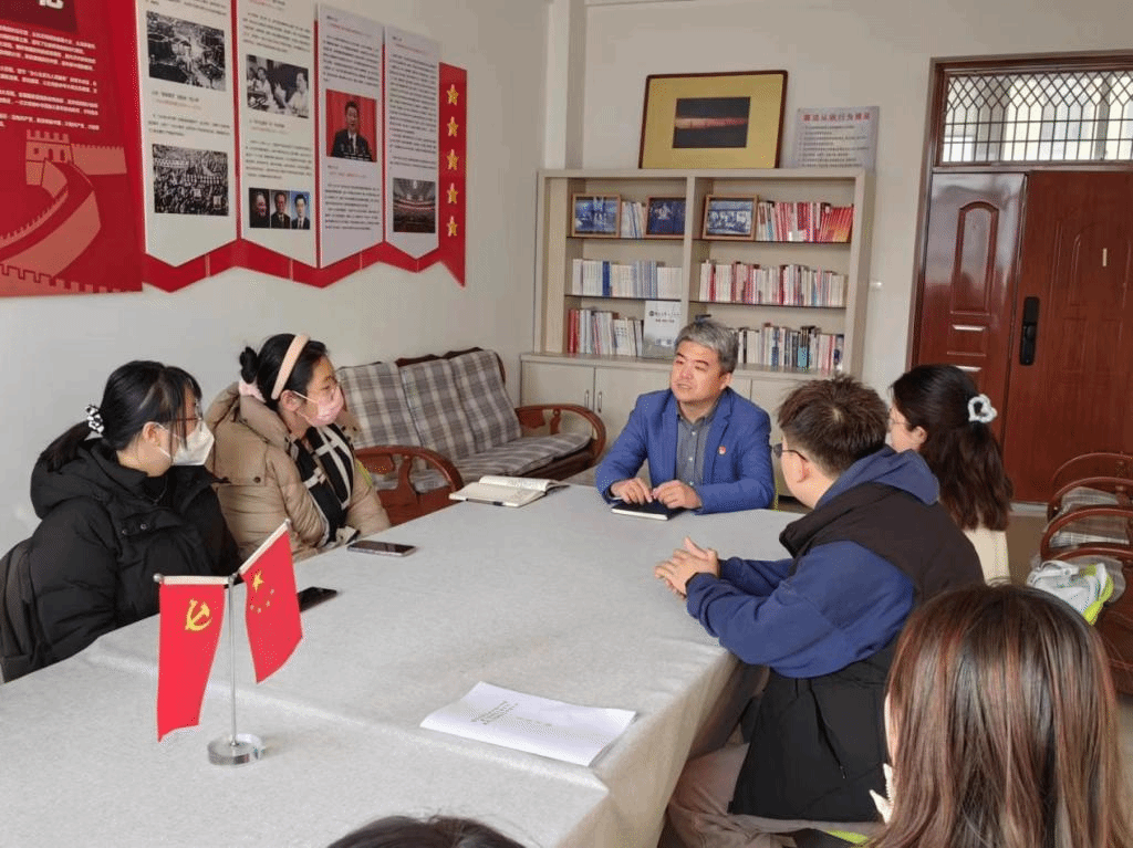 党委副书记宁岩鹏在学院党员活动室与联系的本科生第四党支部座谈交流。