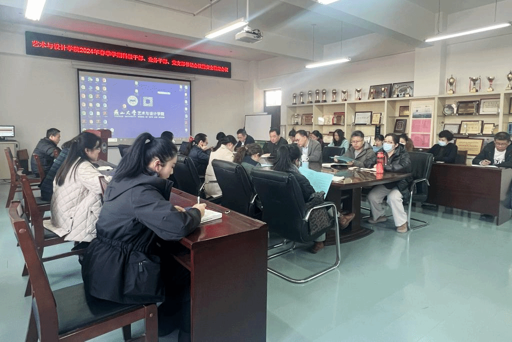 在美术馆C305召开2024年春季学期科级干部、业务干部、党支部书记会议暨安全稳定会议。院党委书记张文超主持会议,院领导班子全体成员、党委委员、科级秘书、正科级专职组织员、师生党支部书记、系部中心主任及副主任参加会议。