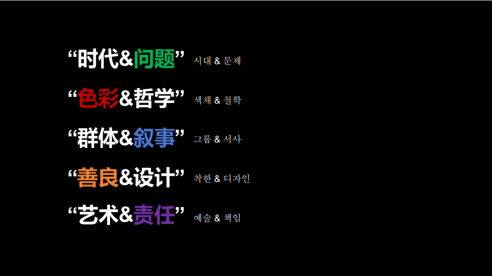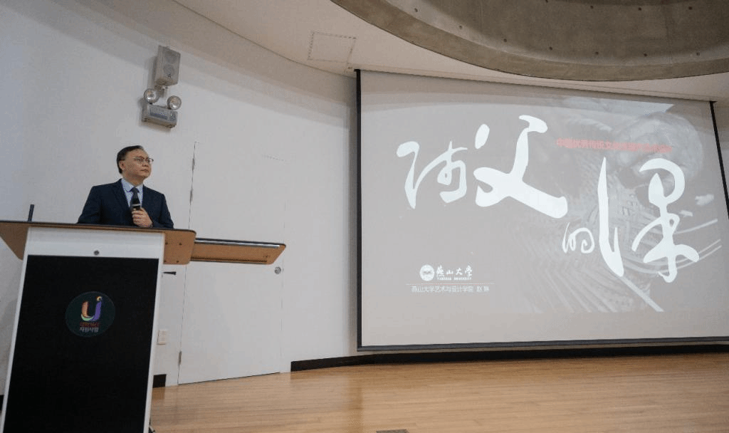 报告伊始,赵琳院长以中韩文化同根同源为引言,对文化传承与发展做出生动阐述。随后,赵琳院长从“时代&问题”“色彩&哲学”“群体&叙事”“善良&设计”“艺术&责任”五个方面展开深入讲解,结合中国传统色彩体系、非物质文化遗产、乡村振兴项目等生动案例,以中国视角从设计的时间维度、空间维度、实践维度、精神内涵、设计伦理角度诠释了艺术设计活动在历史传承、哲学观念、工艺技艺、审美价值和社会背景等方面的特殊性及其在国际文化传播中的重要性。