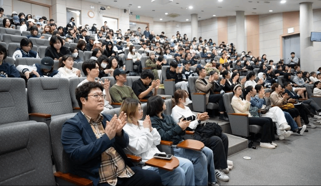 院长赵琳、副院长刘维尚带队,赴韩国开展了系列学术交流活动。4月15日下午,应加图立大学邀请,赵琳院长做题为《师父的课:中国传统优秀文化与现代艺术设计》专题报告。报告由加图立大学社会科学学院闽炳云教授主持,社会科学学院院长南宗勋教授、广告传播系主任张泽元教授、设计学院院长梁禎恩教授、音乐学院金瑾弘教授及300余名师生参加了此次专题报告,李京美老师担任报告翻译。