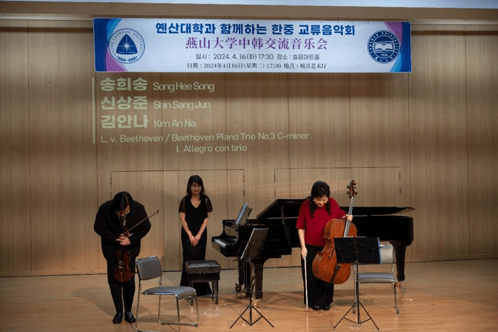 院长赵琳、副院长刘维尚带队,赴韩国开展了系列学术交流活动。并于4月16日17:30在韩国大邱加图立大学孝音艺术厅成功举办中韩交流音乐会。韩国大邱加图立大学校长成汉基教授及相关部门负责人出席了音乐会,并在演出结束后与演员及中方访问团合影留念。