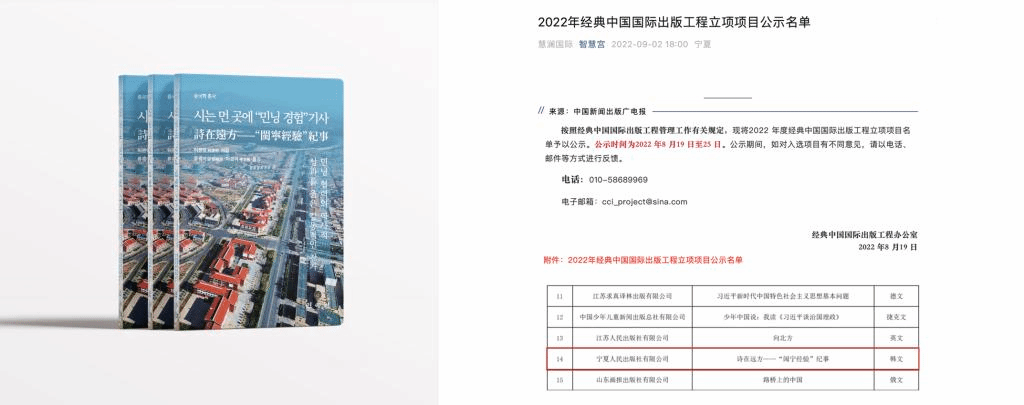 副院长刘维尚、外籍教师李京美与韩国民俗苑出版社合作主持的“经典中国国际出版工程”项目《诗在远方——“闽宁经验”纪事》(以下简称《诗在远方》)获批2022年立项资助。《诗在远方——“闽宁经验”纪事》韩文版项目是我校首次获得国家“经典中国国际出版工程”项目资助。