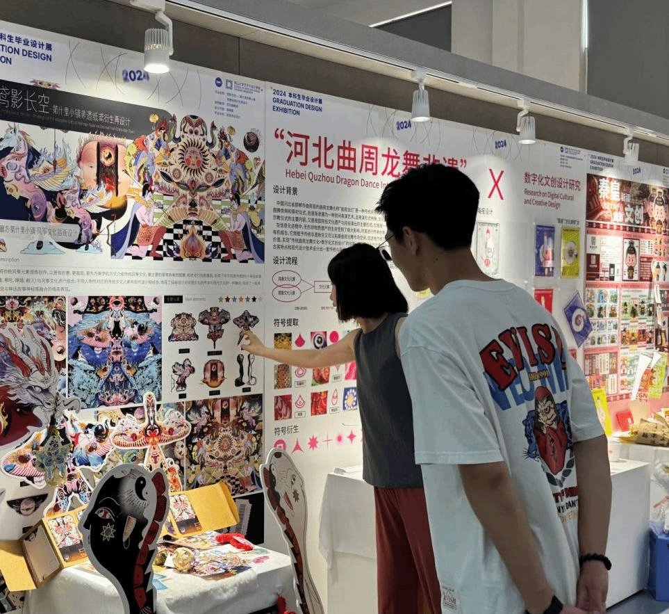 公开课活动结束后,由常鑫带领大家参观了2024届本科毕业设计展,许老师高度肯定了我院学生的专业水平,赞赏同学们以独特的视角、敏锐的感知力,以及扎实的专业技能,创作出了一系列既富于创意又蕴含文化理念的设计作品,并对我院致力于培养具有国际视野、创新能力和社会责任感的高素质设计人才表示高度认可,表达了希望能够与我院进一步合作交流,给毕业生提供更多的就业岗位,以此实现相互赋能、共赢发展。