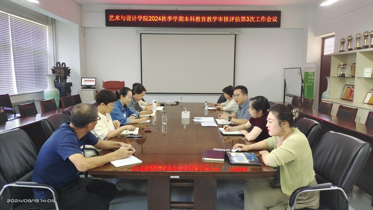 本科教育教学审核评估整改工作,做好专家进校审核评估的相关准备工作,2024年9月19日,学院在美术馆305会议室召开本科教育教学审核评估第三次工作会议,重点部署院内互评的整改工作。会议由副院长王年文主持,各系部中心专业负责人、学院教学秘书参加。