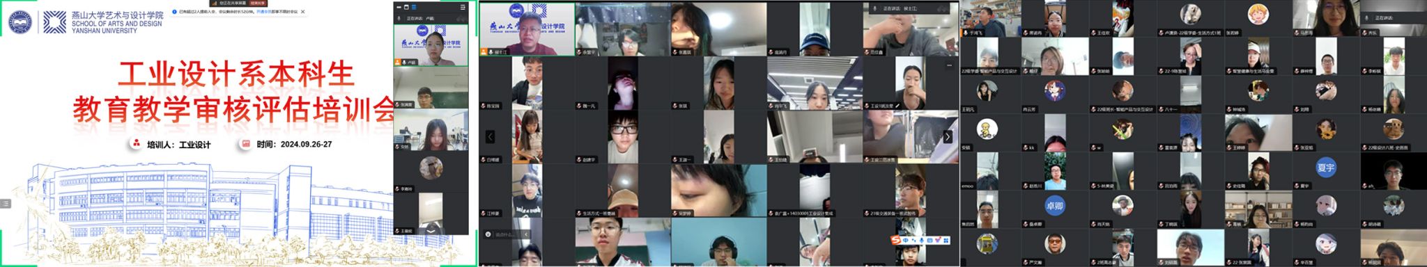 工业设计系于2024年9月26日至27日先后召开“工业设计系教师本科教育教学审核评估培训会”、“本科生教育教学审核评估动员线上会议”。