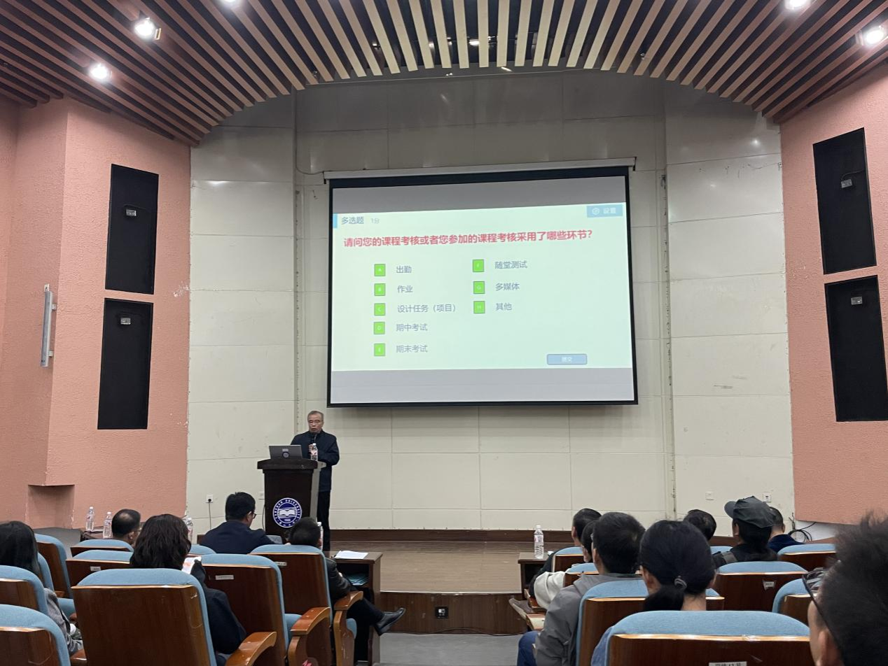 同外国语学院联合邀请机械工程学院史艳国老师,结合工程认证及OBE理念,解读《课程目标达成情况》。史老师详细阐述了课程目标达成评价对专业认证和人才培养的重要意义。他强调,应以高度的专业责任感,明确人才培养目标,坚持以学生为中心,成果导向,持续改进,将OBE理念真正融入日常教学工作中。史老师老师从课程目标与毕业要求指标点的支撑关系、课程评价与课程目标的支撑关系、课程目标达成情况分析评价、间接评价、课程持续改进思路这几个方面进行了细致而有针对性地讲解。通过本次培训,教师们对课程目标达成度的评价有了更深刻的理解,对《课程目标达成情况》的撰写有了更明晰的认识,为本科教育教学审核评估工作的有序推进奠定基础。
