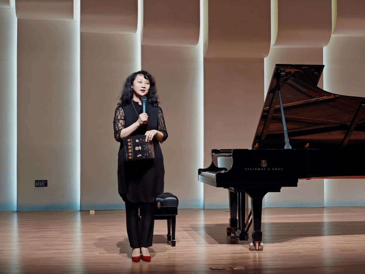 在讲座中,常桦教授对多个音乐时期的风格特点进行了深度剖析。她以塞巴斯蒂安·巴赫的钢琴平均律、贝多芬的钢琴奏鸣曲等经典作品为例,详细阐述了音乐史的重要阶段。同时,她还介绍了浪漫主义时期肖邦的波兰舞曲、勃拉姆斯的帕克尼尼主题变奏曲、拉威尔的大圆舞曲等杰作,以及阿尔贝尼斯利伯曼等不同风格乐派的作品。在常桦教授的精彩讲解与秦伊禾、刘子臻同学的精湛演奏中,这些经典之作如同钥匙,为听众揭示了音乐历史长河中各时期音乐特性的奥秘,让大家深刻理解了音乐大师们的创作精髓与时代特征。