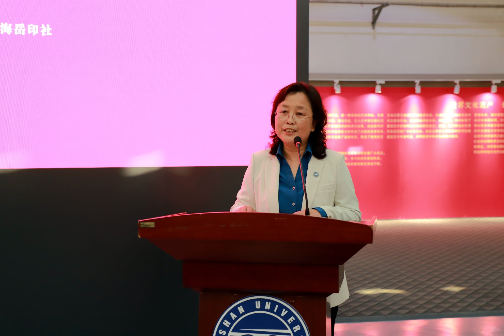 党委常委、副校长李春玲致欢迎辞。她表示,长城是中华民族的精神象征,篆刻是传统文化的瑰宝,此次展览将二者融合,旨在以艺术之美传承红色基因、凝聚复兴力量。