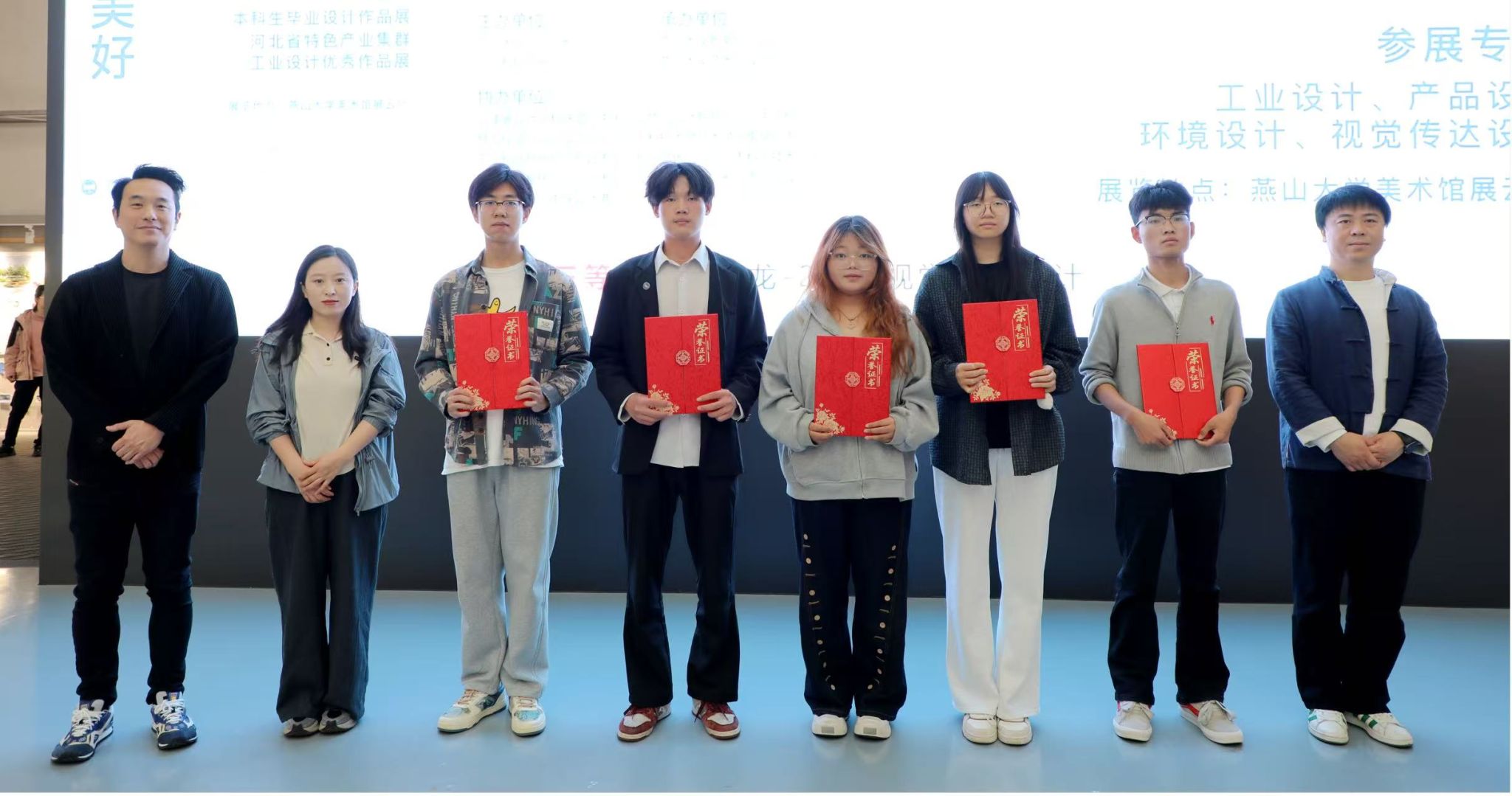 本次展览汇聚工业设计、产品设计、环境设计、视觉传达设计四个本科专业257名学生的优秀作品,更增设“河北省特色产业集群优秀设计作品展”板块,同步展出定州体育用品、邢台自行车童车产业集群130余幅赋能成果,并携手广汽集团等开展深度校企合作。从康养辅具、智慧交通等智能装备设计,到乡村振兴、城市更新的场景创新;从非遗传承的文化赋能,到服务民生的幸福提案,作品既延续 “艺术让生活更美好” 的核心理念,更以设计回应人工智能时代的产业变革,展现青年学子对社会现实的深刻洞察与未来生活的创想力。