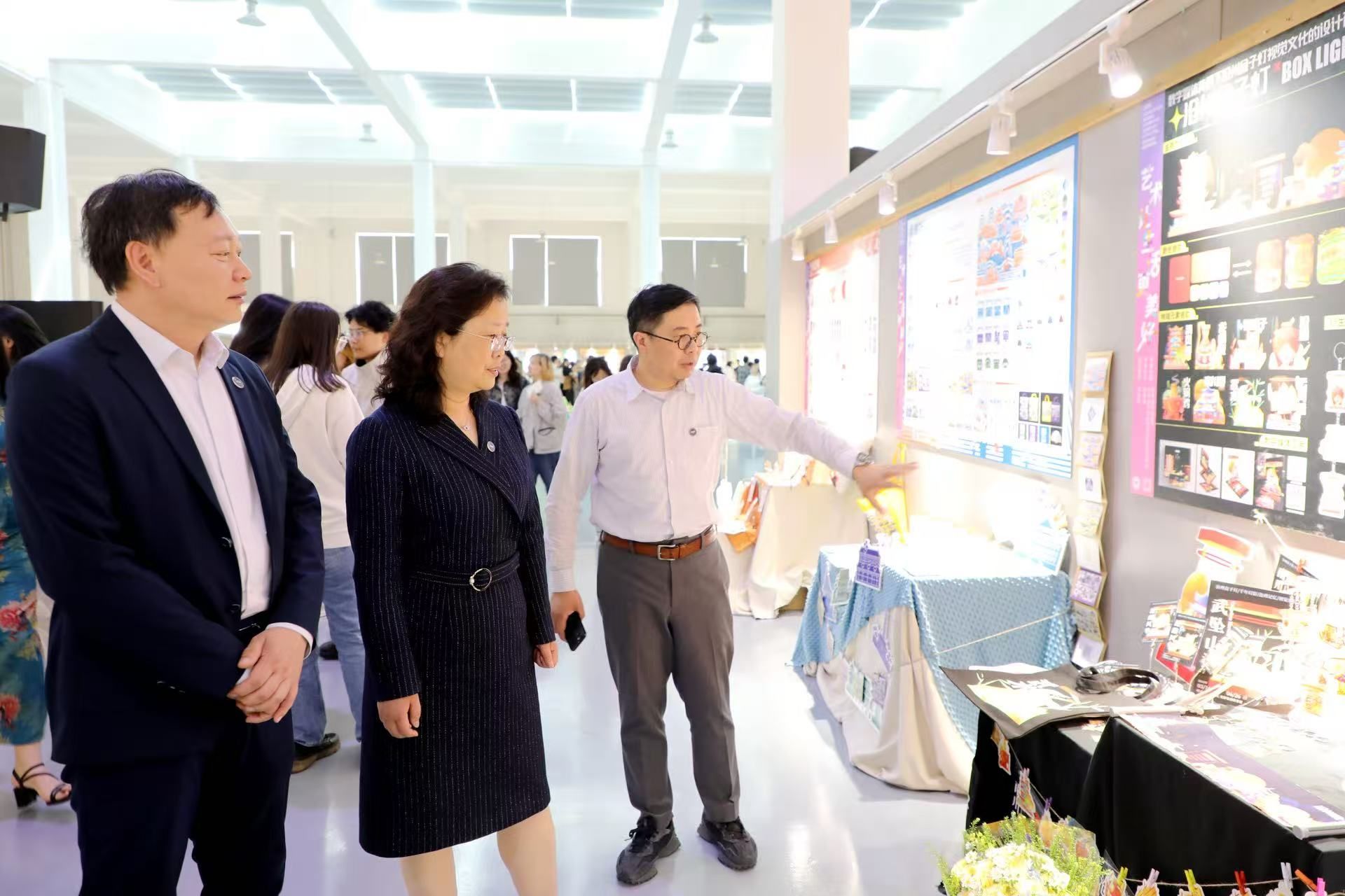党委常委、副校长李春玲,秦皇岛市工业和信息化局三级调研员陈宝君,秦皇岛市文联副主席、美术家协会主席宋鸿钧,秦皇岛市文联副主席、书法家协会主席乔海光,外请专家广汽研究院首席设计师陈奎文,河北建材学院艺术设计系主任曹竑楠,秦皇岛工业信息化局中小企业服务中心副主任高佳梅,秦皇岛市工业设计协会副会长兼执行秘书长高金霞,驻秦院校艺术学院负责人,以及学校办公室、党委宣传部、教务处、科学技术研究院、社会科学处、招生就业处、创新创业教育与指导中心、东北亚古丝路文明博物馆等各职能部门负责人,各学院教学负责人,指导教师代表,毕业生等校内外嘉宾出席了开幕式。
