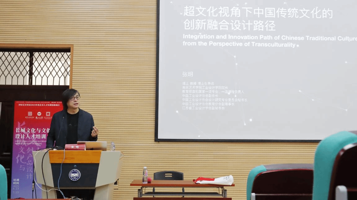 韩荣教授围绕传统造物的叙事逻辑展开,揭示其中蕴含的生态智慧和协同再生的可能性,探讨了如何在尊重传统文化的基础上,通过现代设计手法使其焕发新生,同时确保这些设计作品能够适应现代市场的需求。韩荣教授还通过具体的案例和研究成果,展示了传统造物在当代设计中的应用,以及如何通过创新设计提升其市场竞争力。通过这次授课,学员们获得了宝贵的知识和灵感,学习到了如何将长城文化等传统元素融入现代文创产品设计中,创造出既具有深厚文化底蕴又符合现代审美和市场需求的作品。