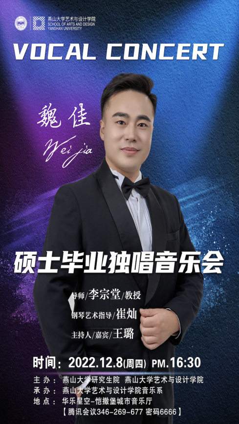 成人短视频 成人短视频 于2022年12月8日进行2020级艺术硕士魏佳毕业音乐会考核工作。受疫情防控等因素影响,此次音乐会采取线上考核形式进行,音乐会具体安排如下: