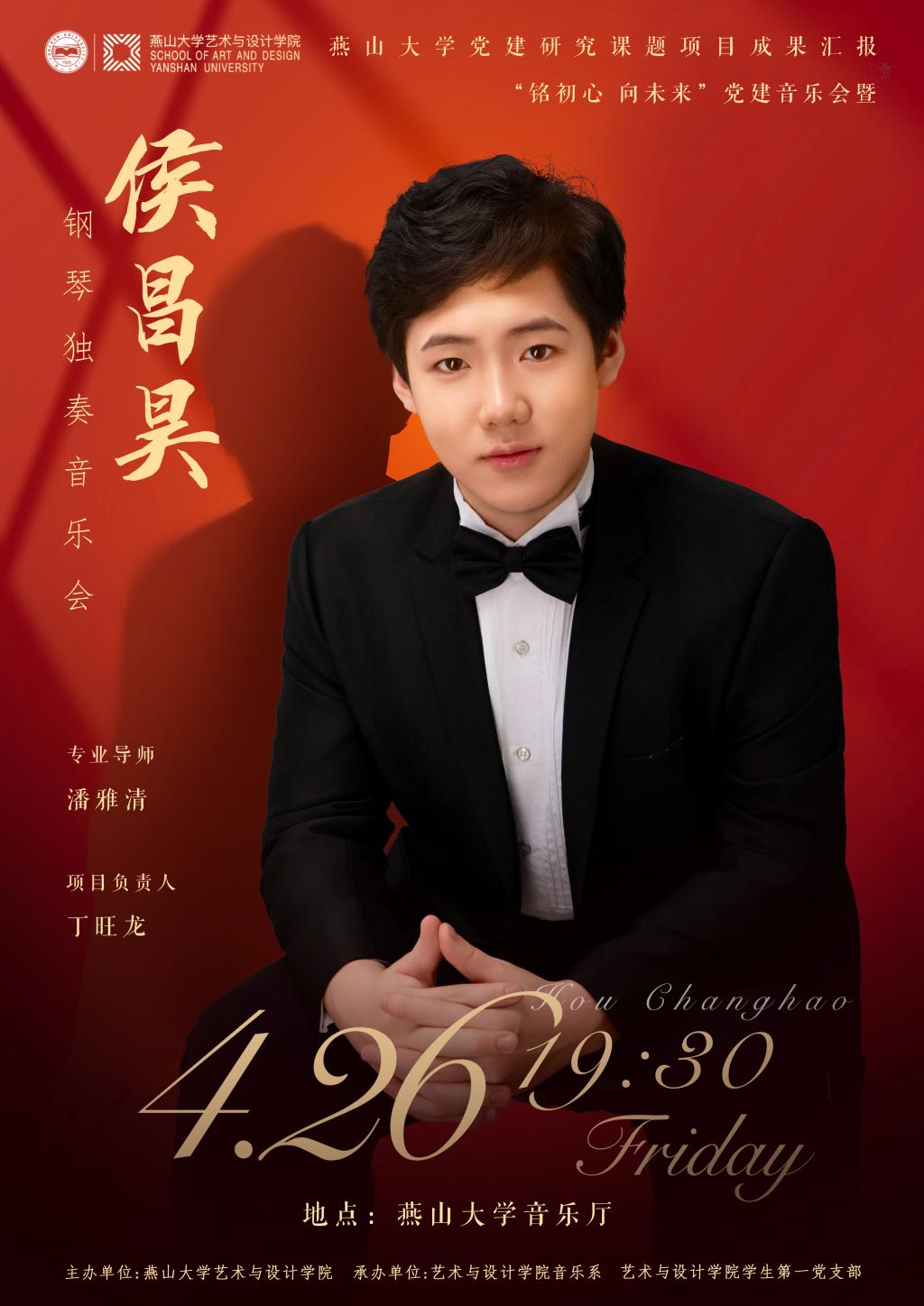 将于4月26日19:30,举行“铭初心 向未来”党建音乐会暨侯昌昊钢琴独奏音乐会。本场音乐会亦为成人短视频