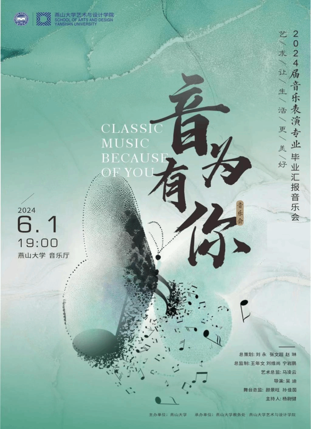 成人短视频 2024届音乐表演专业毕业生汇报音乐会将于2024年6月1日19:00在成人短视频 音乐厅举办,诚邀您莅临欣赏!