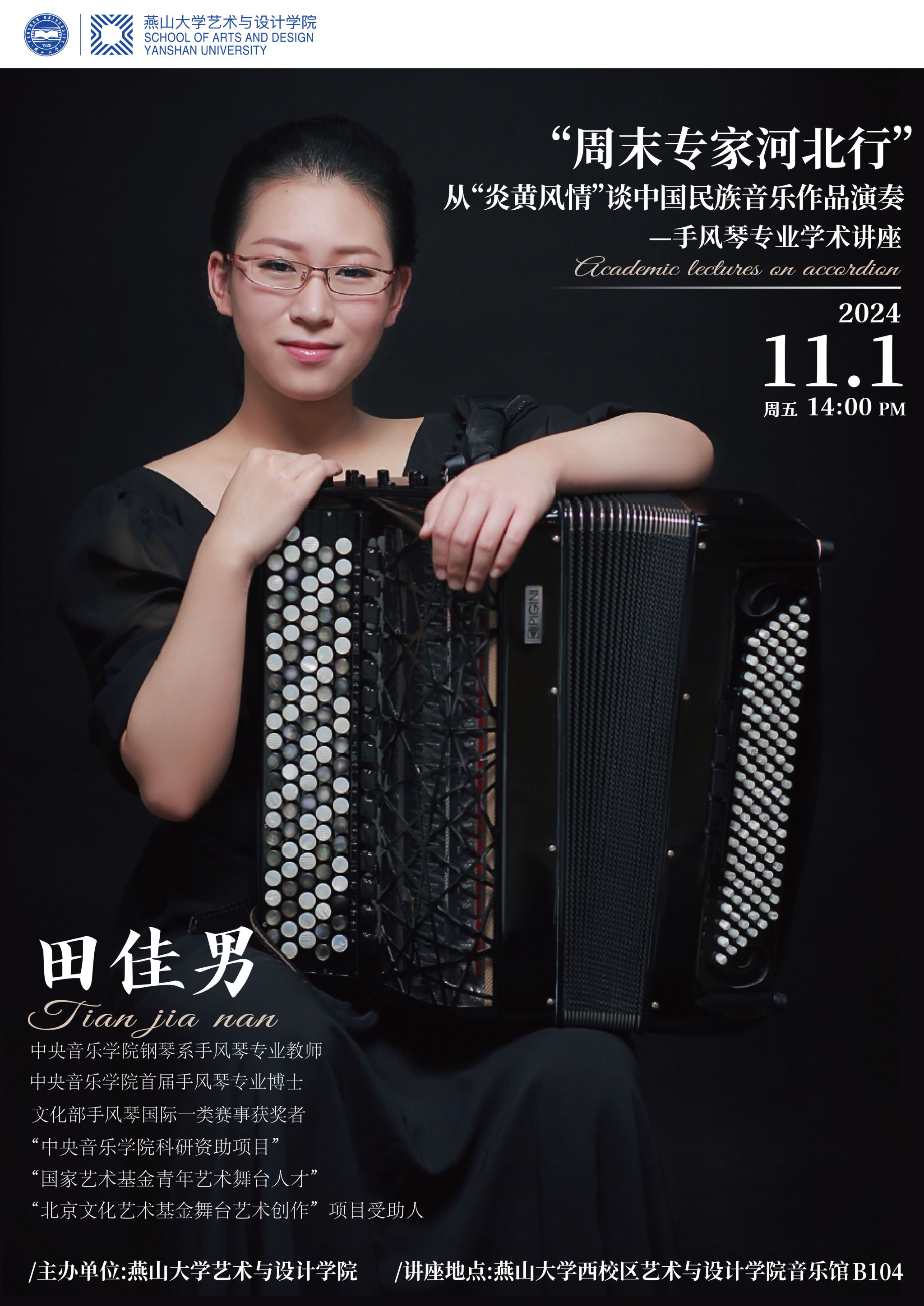 田佳男,中央音乐学院钢琴系手风琴专业教师,中央音乐学院手风琴专业博士。获得国际手风琴顶级赛赛事奖项共计34项(含23项第一名),其中古典、流行、室内乐各领域共8项第一名为中国选手首次获得,获作曲比赛奖项8项(含5项第一名),多次得到中国文化部国际一类、二类赛事荣誉嘉奖,获奖事迹入编北京市教育年鉴。先后出版发行4套独奏专辑、1套室内乐专辑,受邀在西班牙、德国、意大利、美国、加拿大等国举行独奏音乐会巡演,多次担任加拿大、意大利、葡萄牙、波黑等国际赛事评委。受中国文化部委派赴美进行访问及学术交流。