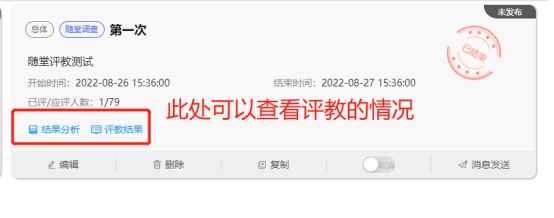 评教问卷发布,学生填写之后,可以在相应问卷下面查看学生评教情况。
